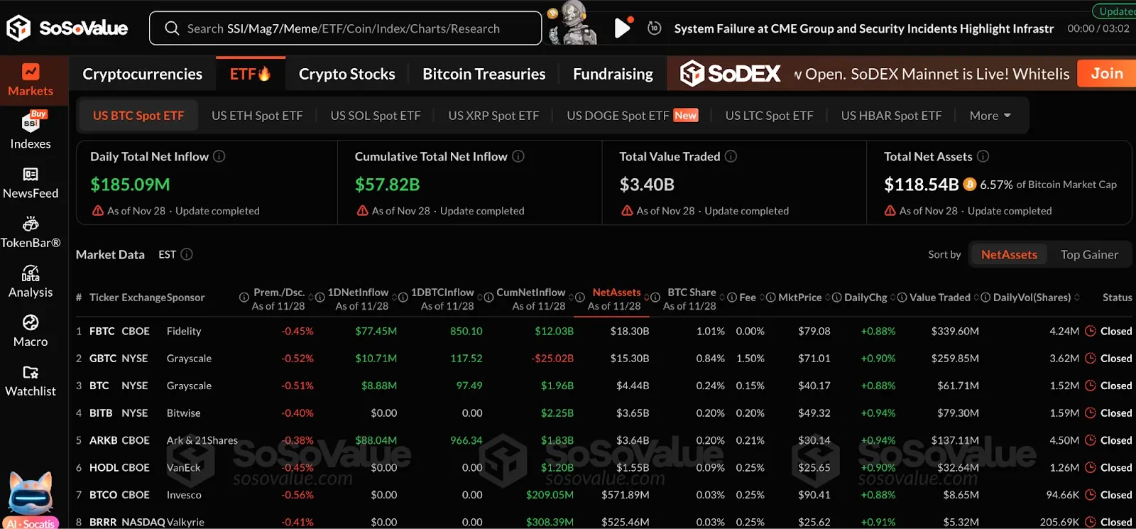市场情绪:市场已摆脱“极度恐慌”阶段,开始慢慢复苏,但因四年周期论和巨鲸抛售,价格并未实现V型反转。Bitmine 在继续囤积ETH,本周美国现货ETF都呈现净流入,“木头姐”在抄底Coinbase、Circle 等加密概念股票。目前聚焦点在美联储12月10日的议息会议上。市场对降息的预期很高,如果实现降息,通常意味着流动性改善,可能提振包括加密货币在内的风险资产。反之,若预期落空,可能引发市场波动。现美联储利率观测,12月降息的概率为82.8%。以太坊预计在12月4日进行Fusaka升级,韩国交易所Upbit 被盗事件后,SOL 价格承压,但近期的美国现货ETF净流入也对价格起到了一定的支撑作用。