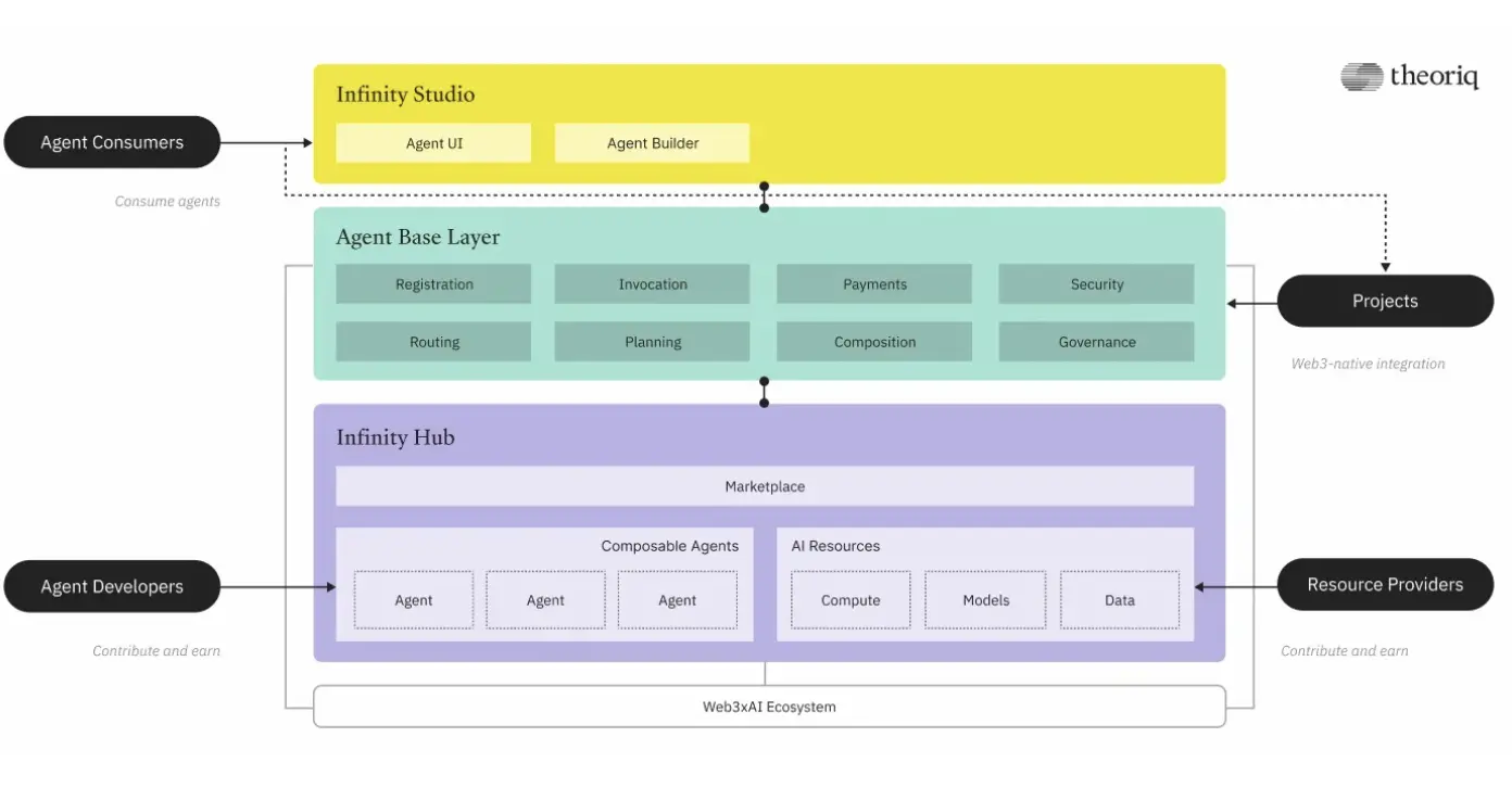 在 Theoriq 的设计中,单一模型并不重要,重要的是协作。不同专长的代理临时组成集群,共同完成复杂任务。价值来自协同,而不是某一个“最聪明”的 AI。