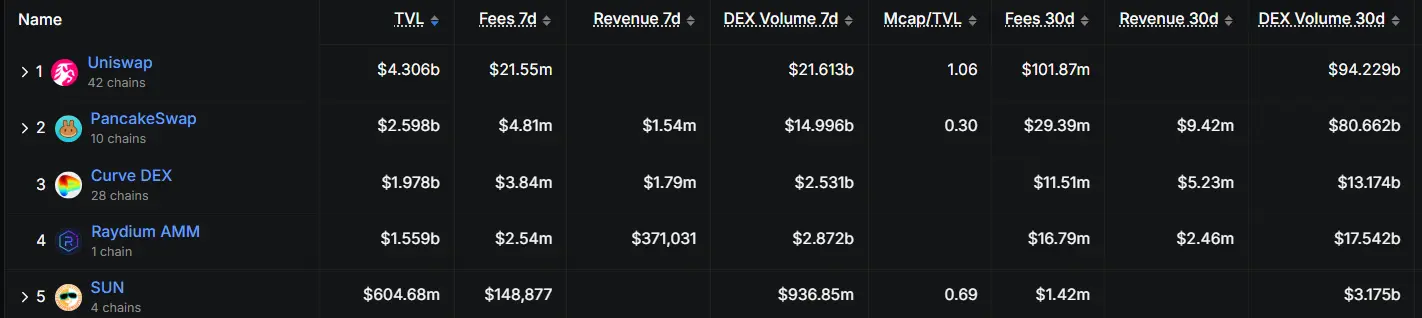 SUN.io持续领跑:TVL稳坐全球DEX前五,产品协同引爆增长新势能