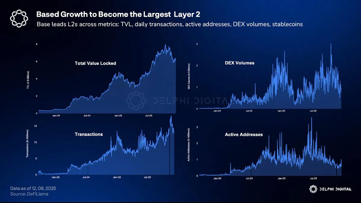 以此为基础,Coinbase 正在构建接口层。Base App 感觉更像是内容推送平台而非交易终端。底层 Rollup 平台托管着独立项目,Coinbase 则利用其自身的影响力进行推广。Morpho 在 Base 平台上的未偿贷款总额已超过 9.05 亿美元,充分展现了复利效应。在支付方面,随着人工智能驱动交易的增长,x402 平台将为他们提供代理支付渠道。