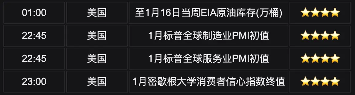 - 世界经济论坛全球经济前景讨论会:18:00 - 聚焦地缘与宏观风险。