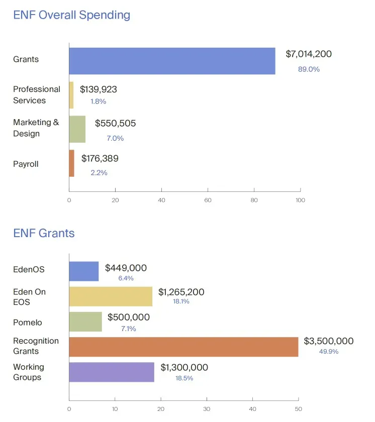 回顾基金会早期,VF 的确曾通过各种资助计划试图重建 Vaulta(EOS)生态,包括 Grant Framework、Recognition Grants 以及与 Pomelo 搭配使用的公共资助池。